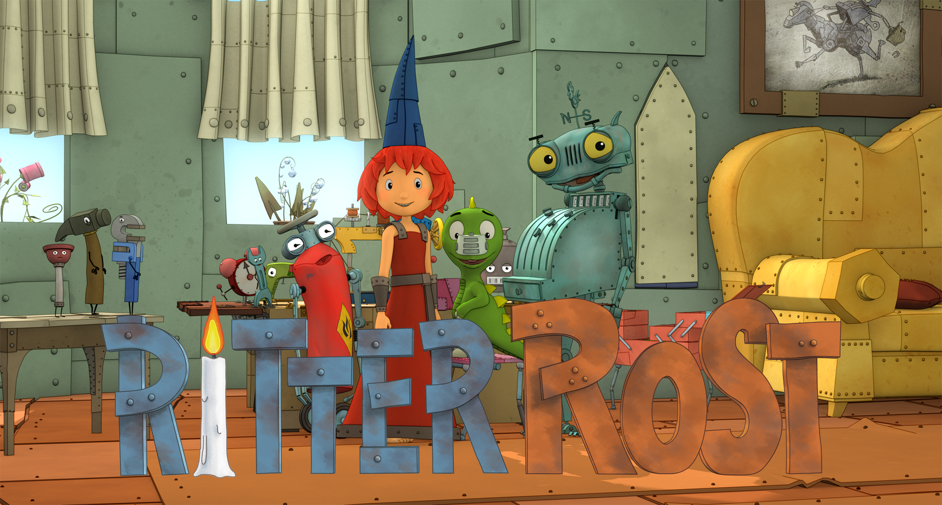 In the Kingdom of Scrapland KNIGHT RUSTY is an insignificant knight. Bravery and courageousness are not one of his outstanding characteristics; he likes it calm and comfortable instead. Together with MAID BO and COKE THE FIRE DRAGON he inhabits the Iron Castle. However, Maid Bo has a completely different image of what a knight should do. Thus Rusty must consider whether he wants to live on at a trot. As always he prosperously yields to his fate but everything turns out in another way…