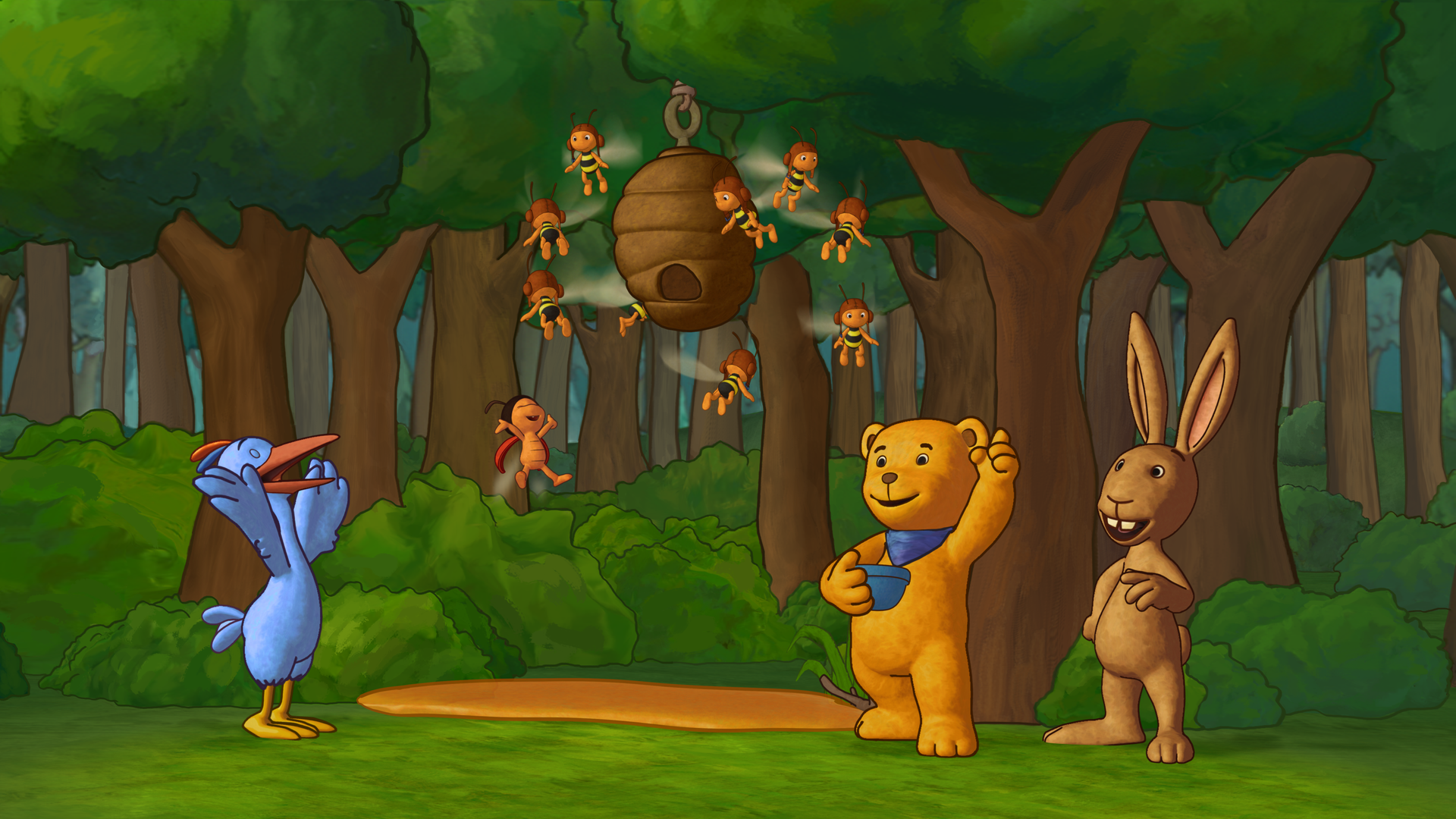 All his friends in the forest call him the Moonbeam Bear, but he's actually a normal little bear who dreams of inviting the moon to eat delicious homemade honey cake. He is always helpful and caring and can never say no when his friends ask him for a favor - and because he has so many friends, his life in the forest is full of adventure.